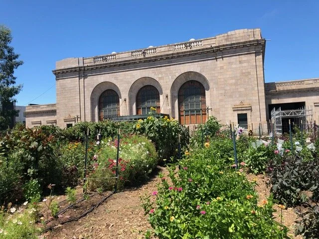 Flowers, not concrete, in front of the historic 16th Street Station in Oakland